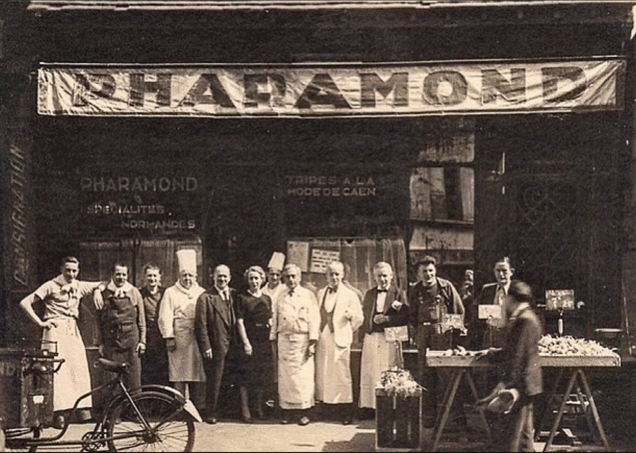 C'est en 1832, que la famille Pharamond, d'origine Normande, s'installe à Paris et fait connaître les "tripes à la mode de Caen". Elle choisit le quartier des Halles, alors "ventre de Paris". En 1879, Alexandre Pharamond installe son restaurant, "À la Petite Normande" au 24, rue de la Grande Truanderie (ça ne s’invente pas…) dans le 1er arrondissement.